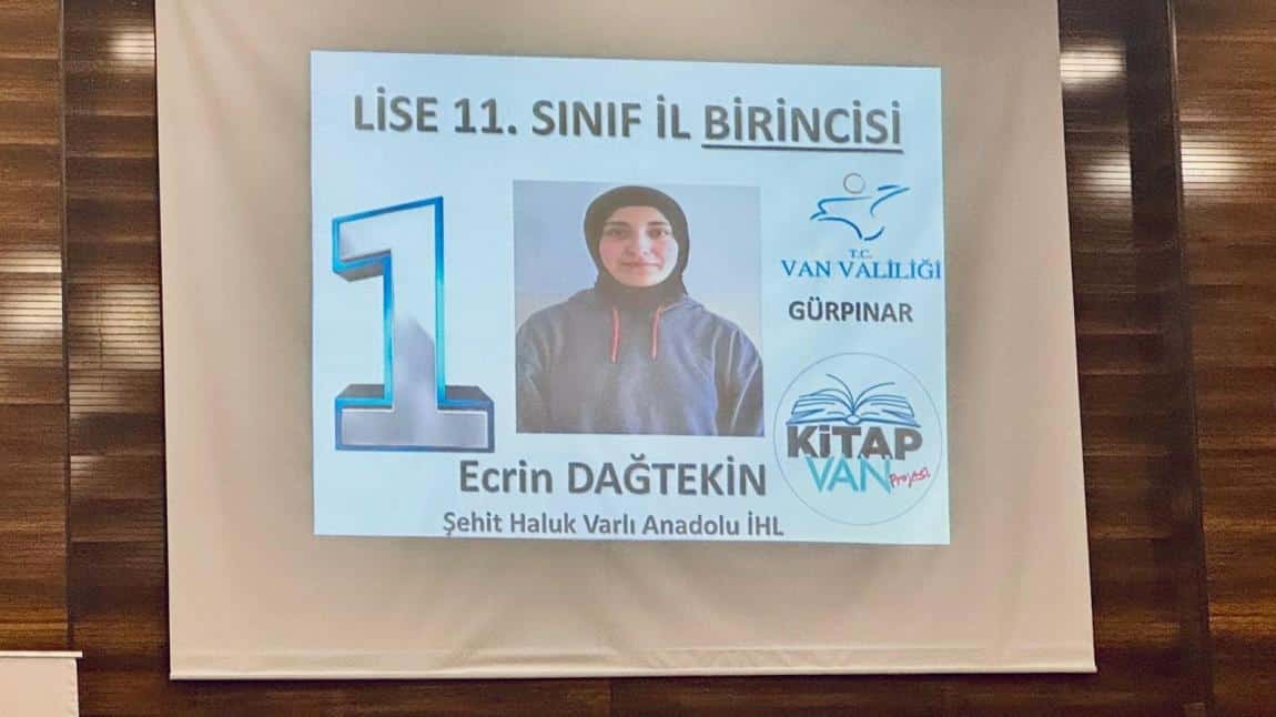 "KİTAP VAN PROJESİ"NDE ÖĞRENCİMİZ İL BİRİNCİSİ OLDU