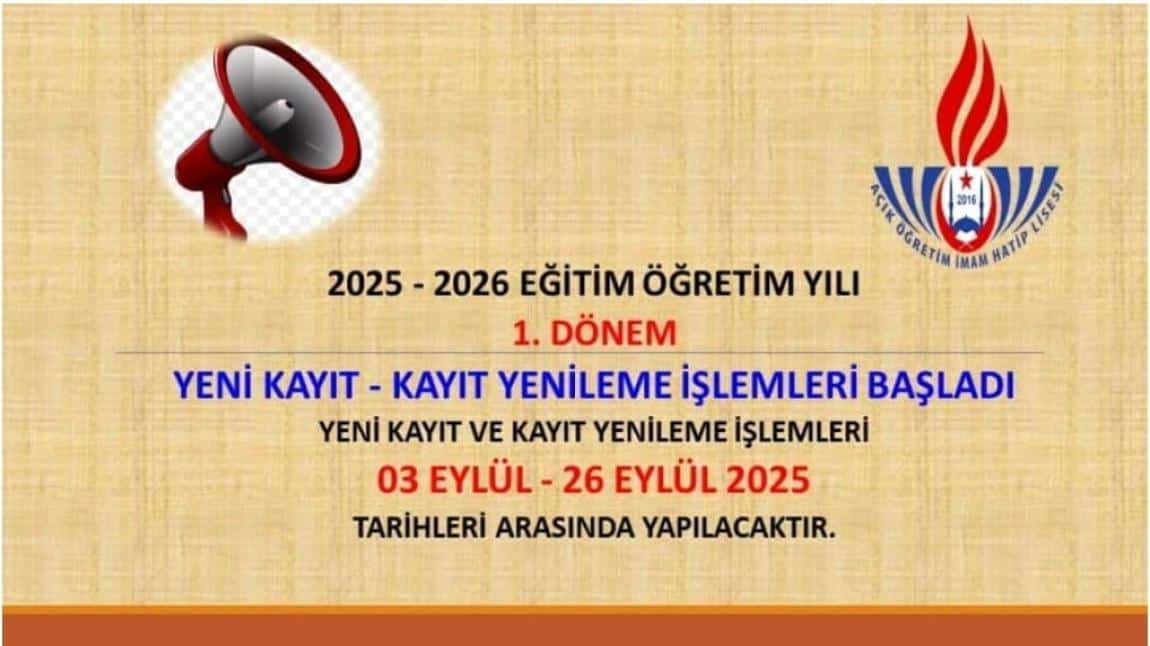AÇIK ÖĞRETİM YENİ KAYIT VE KAYIT YENİLEME İŞLEMLERİ BAŞLADI